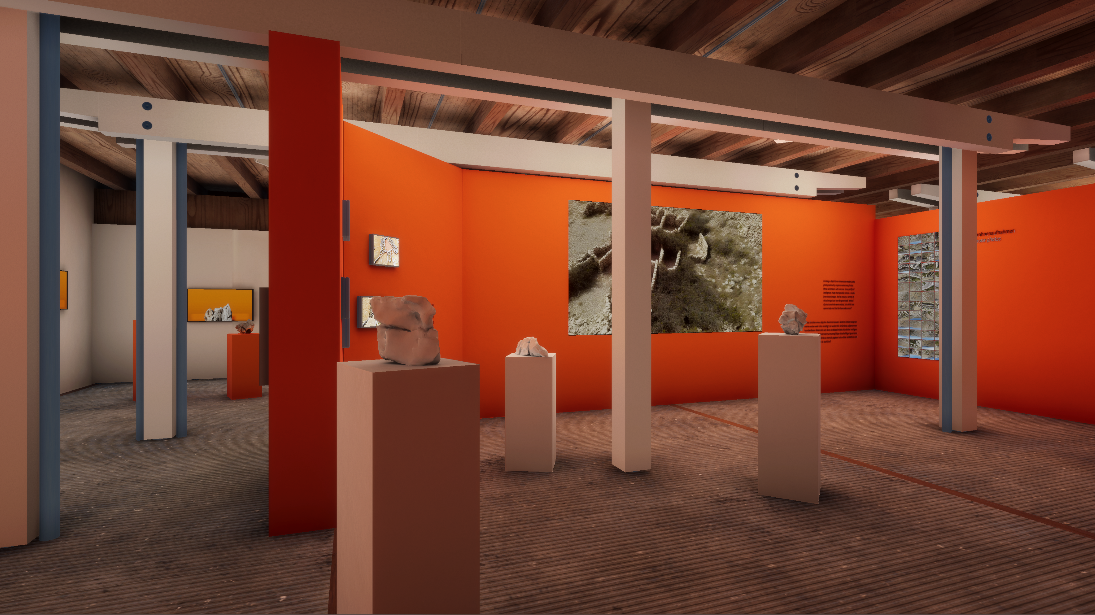 schafhof.next means to document and archive past exhibitions which were shown at the schafhof european art forum in Freising, Germany. Exhibitions are captured during their runtime and afterwards revisited in collaboration with the respective artists to remake them in a virtual space. The focus in this process lies less in creating the most accurate representation and more in fulfilling the artists’ visions in a virtual world - sometimes even beyond what is physically possible.